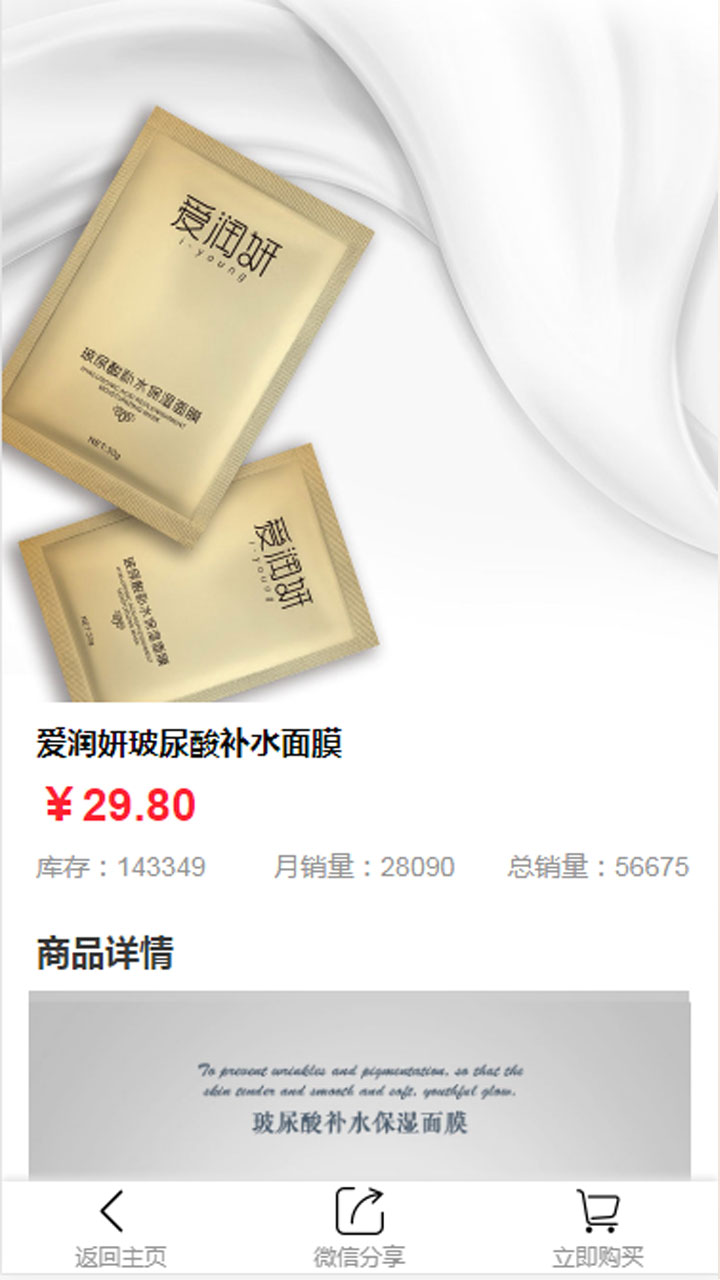 爱润妍商城一折销售玻尿酸弹力眼霜、面霜、BB霜、V脸面膜、精华液、双头口红、微晶眼贴等玻尿酸美妆产品。所销售产品均在国家药监局备案,可放心使用。全国一折包邮!