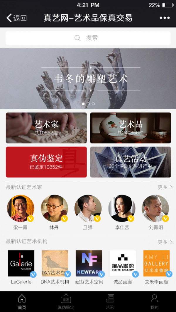 真艺app是一款网络购物应用,真艺app为用户打造一个艺术品在线购物平台,让用户可以通过软件轻松选购各类艺术收藏品,为用户购物带来便利。