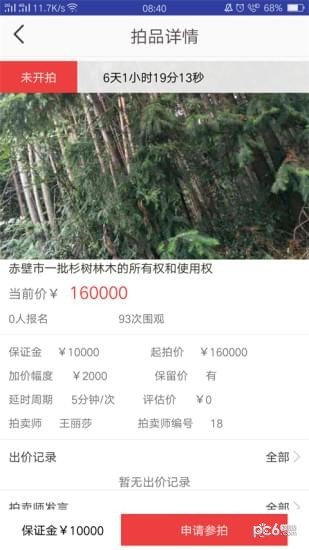 3、确认后,点击【申请参拍】,然后阅读《创拍网网络服务协议》并【同意】,根据提示支付相应金额的保证金。