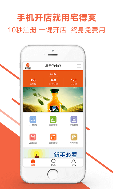 1、操作简单:10秒免费开店,界面简洁、功能完善;