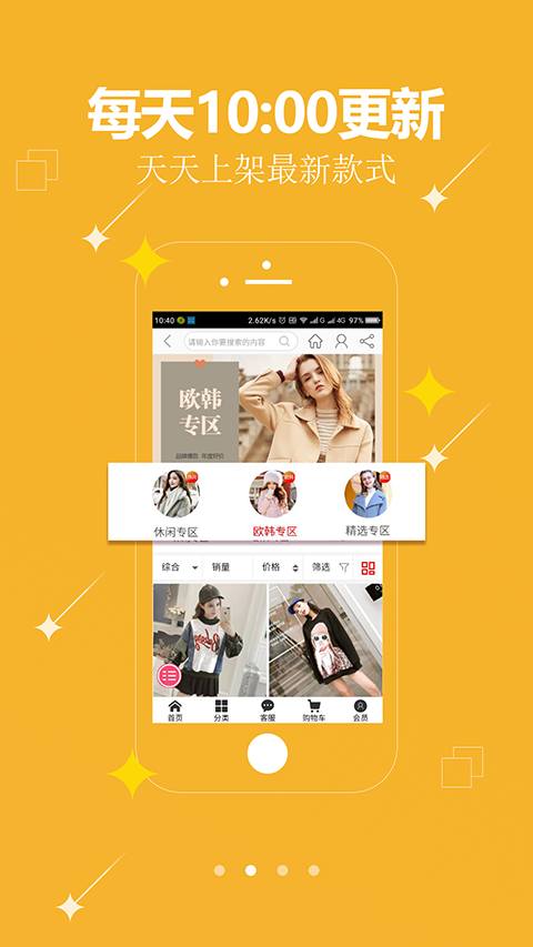 2.更新快,每天早10点上架新款,让你每天穿新品。