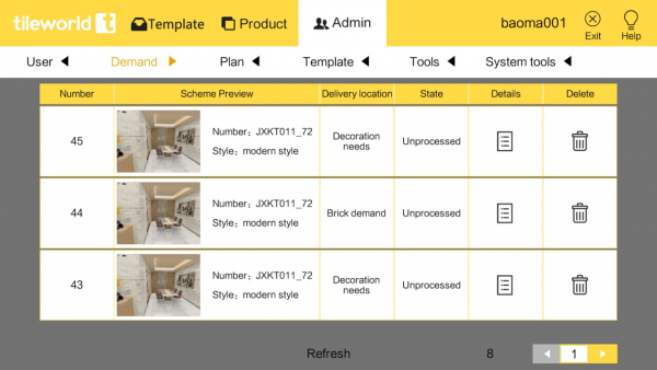 We develop the purchasing tool “tile world” which is beyond your imagination. As long as you get it, you can get in touch with us anytime, anywhere. Meanwhile, you can trigger your demand, and submit it in simplest way.