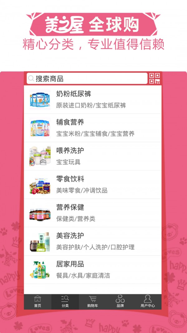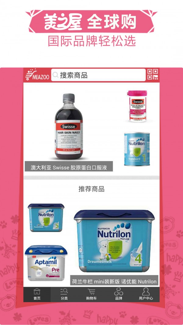 美之屋在香港拥有多家实体店,以及优质的世界品牌进货渠道,为爸爸妈妈带来优质超值的全球知名品牌商品(包括母婴用品、食品、化妆品以及生活用品)2016年初,属于我们自己的购物APP正式上线。