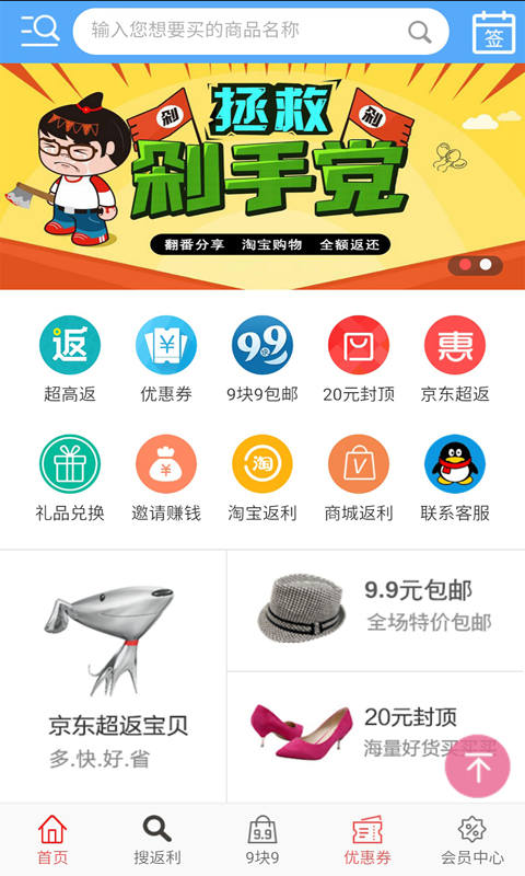 翻番分享app是一款网络购物类应用,网罗淘宝、天猫、京东等商城特惠商品,提供超额返利,让你每天都能享受实惠省钱的购物体验。