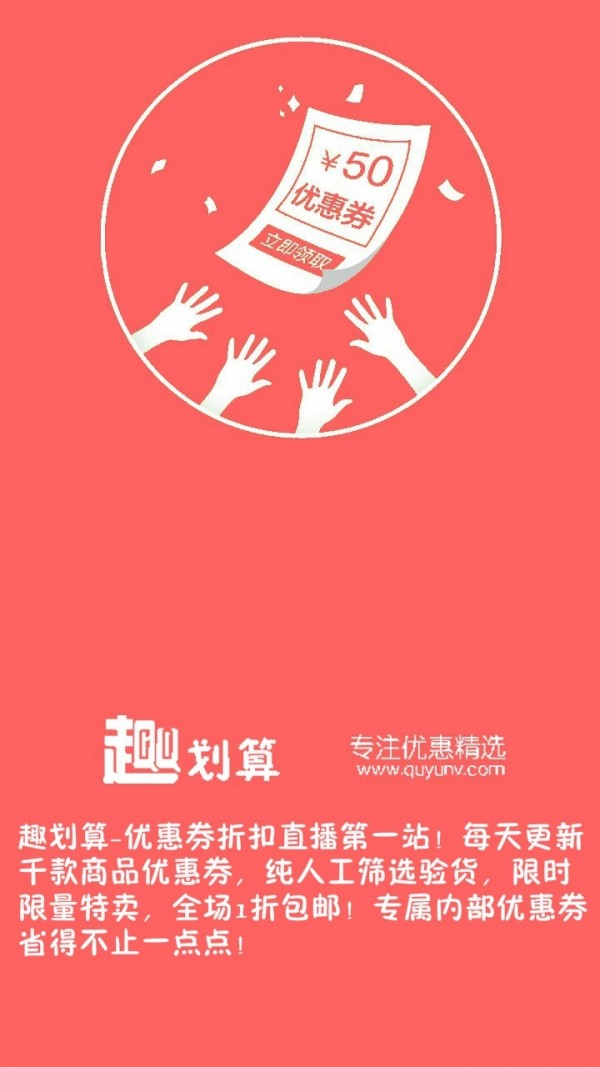 无门槛优惠券:趣划算天天更新,领券再购物,低至1元包邮,天天都是双十一! 9块9包邮抢购:精选优质商家产品,券后至高9块9包邮,让你买到笑!