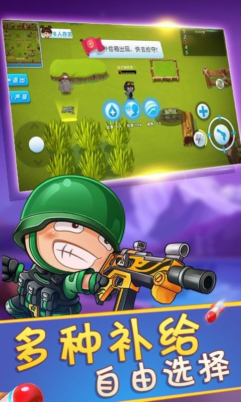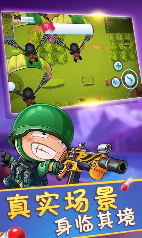 绝地求存荒野求生战场是一款刺激的枪击存活类射击游戏。玩家将投身于刺激性的竞技场中,只为了更好地存活而战,落地式后尽量快的寻找枪械才可以开场就占得优点,承继了吃鸡游戏的基本游戏玩法,可是也是有非常大的不一样,由于是第三人称角度,因此并不一定声辩,人眼就能见到对手的所属方向,在技术性层面也就没那么多规定了,Q版的游戏风格也让这个游戏越来越讨人喜欢。