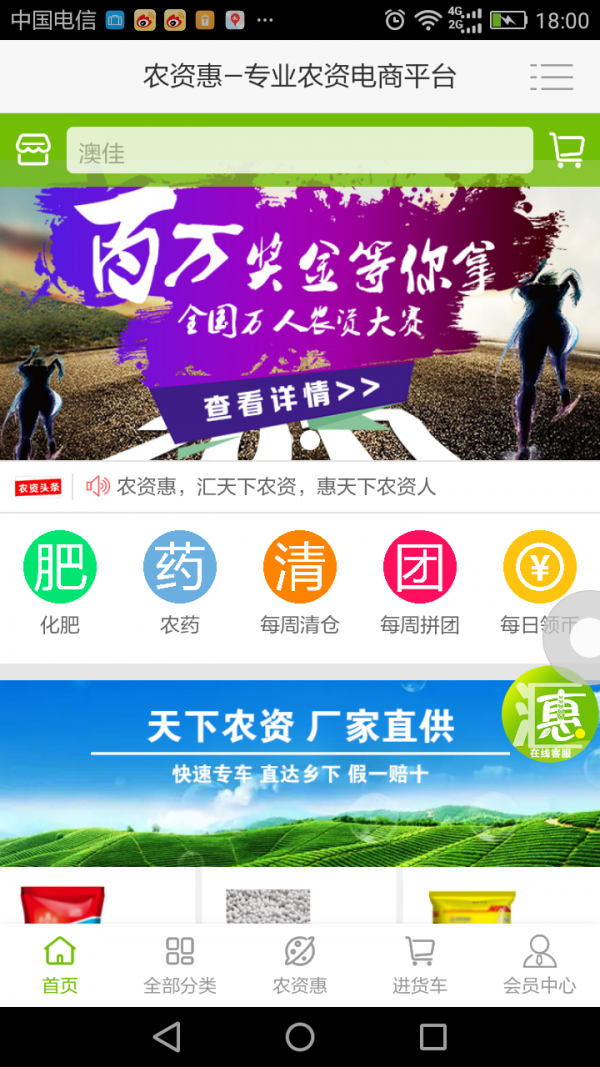 农资惠,订农资快又好!中国首个农资经销商自己的电商联合会,所有农资厂家直供,正品保证,为全国线下农资经销商提供进货服务的App,依托农资惠的丰富商品和强大供应链,为广大中小经销商门店提供优质货源和服务。