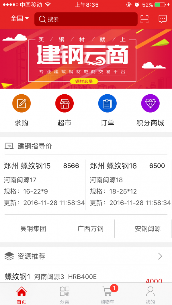 建钢云商app是一款网络购物应用,通过建钢云商app你可便捷的查阅产品信息,了解相关资讯,以及在线选购商品等。