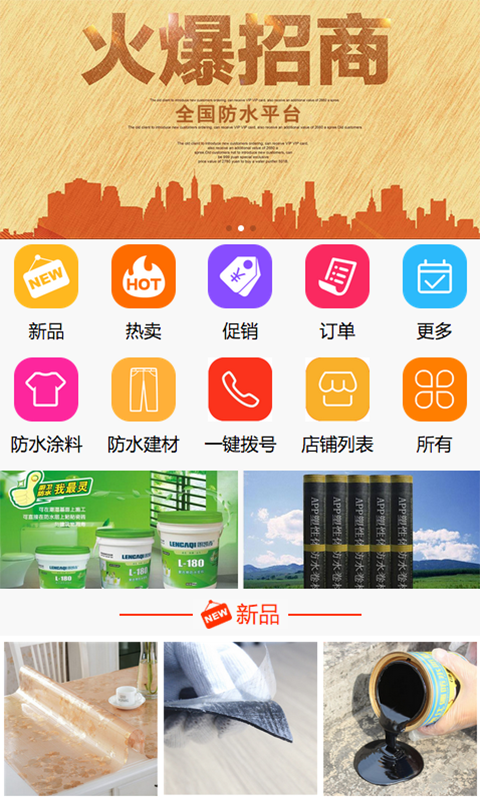全国防水平台app是一款电商购物类应用,专注销售各类防水材料产品,提供品质购物服务,让用户采购变得更快捷。