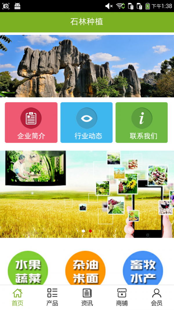 石林种植app不仅具备购物、查询订单、搜索商品、行业资讯和 产品评价等常用功能,而且还实现了手机版特有的会员注册 登录、广告位、招商开店等功能。目标是整合石林当地品牌商、 生产商、经销商,为商家和消费者之间提供一站式解决案。