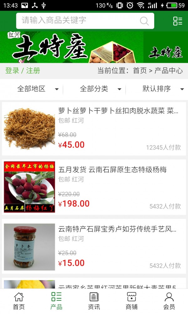 红河特产app不仅具备购物、查询订单、搜索商品、行业资讯和产品评价等常用功能,而且还实现了手机版特有的会员注册陆、广告位、招商开店等功能。目标是整合当地品牌商、生产商、经销商,为商家和消费者之间提供一站式解决方案。欢迎下载使用!