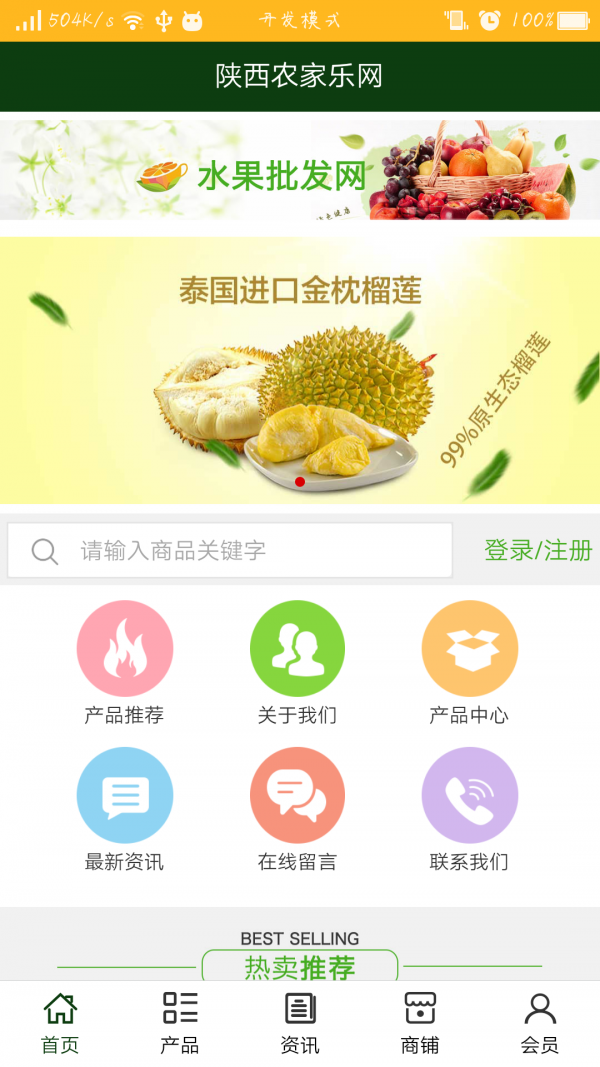 陕西农家乐网客户端不仅具备购物、查询订单、搜索商品、行业资讯和产品评价等常用功能,而且还实现了手机版特有的会员注册登录、广告位、招商开店等功能。