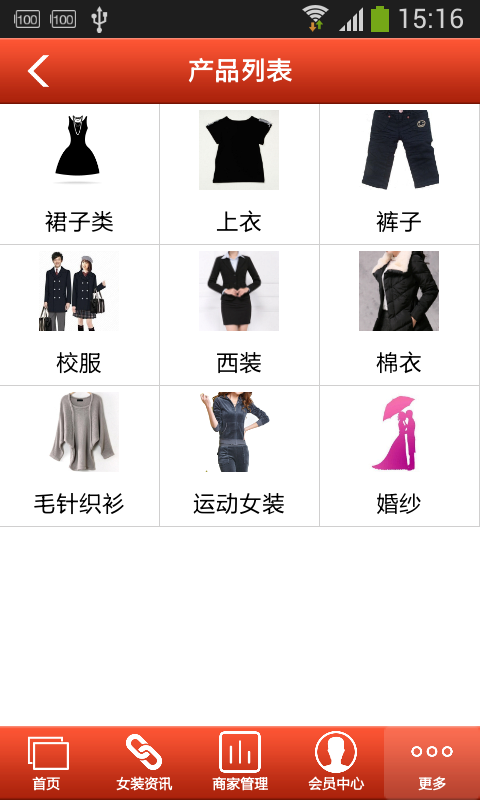 【产品列表】:本应用提供相关各种产品分类,方便客户查询购买。