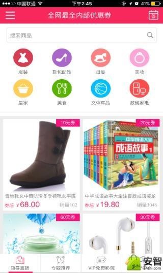 集全网优质时尚优惠品牌商品,商家内部优惠券,领取优惠券打开淘宝天猫即可内部优惠价格购买,本平台仅提供优惠券导购服务,不产生任何交易,只为客户需找优惠商品服务,每日更新上万款产品供您选择。