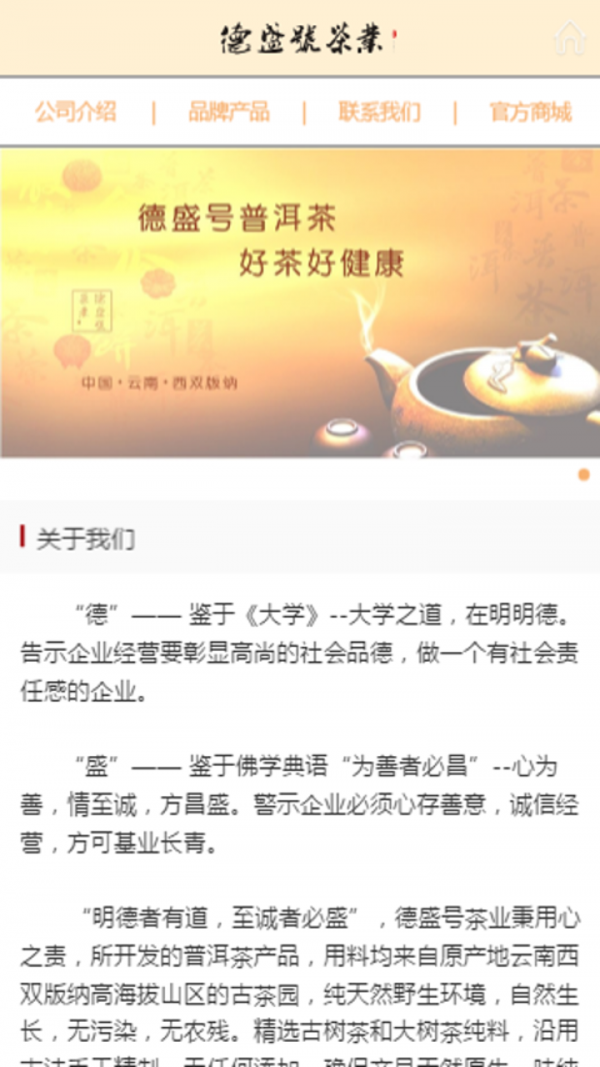 “明德者有道,至诚者必盛”,德盛号茶业秉用心之责, 坚持品质、诚信经营的原则,只做高品质、无农残、无污染的普洱茶。