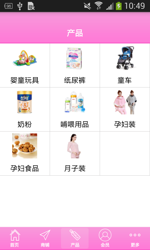 【分类清晰】产品分为婴童玩具、纸尿裤、童车、奶粉、哺喂用品、孕妇装、孕妇食品、月子装等等;