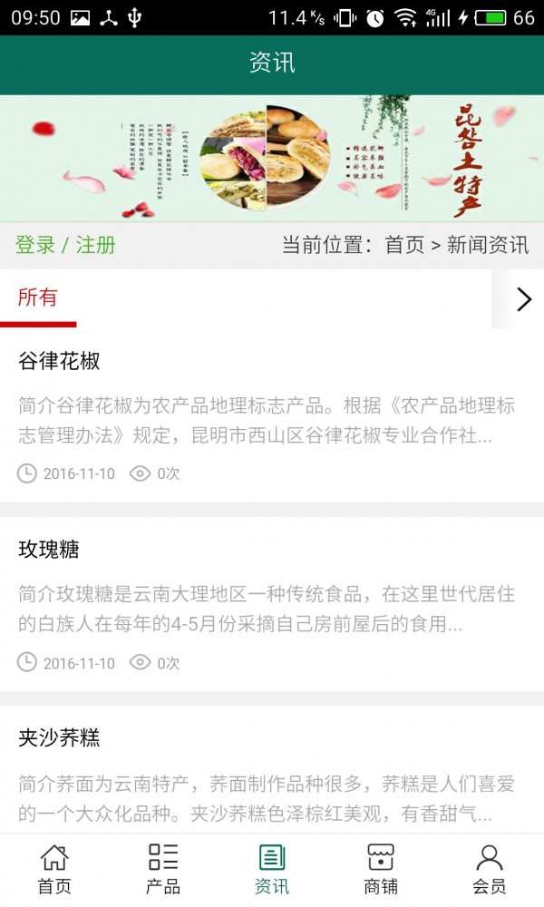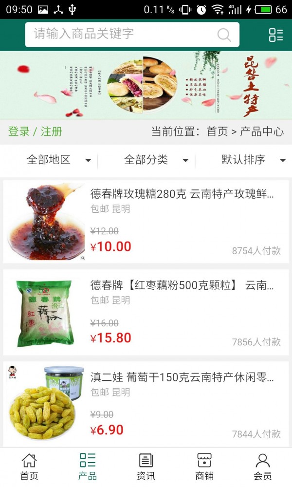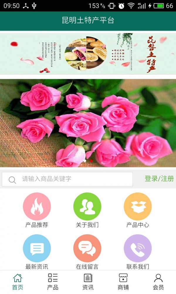 昆明土特产平台app是一个集聚了昆明及地方特产于一体的展示平台,不仅具备购物、查询订单、搜索商品、行业资讯和产品评价等功能;