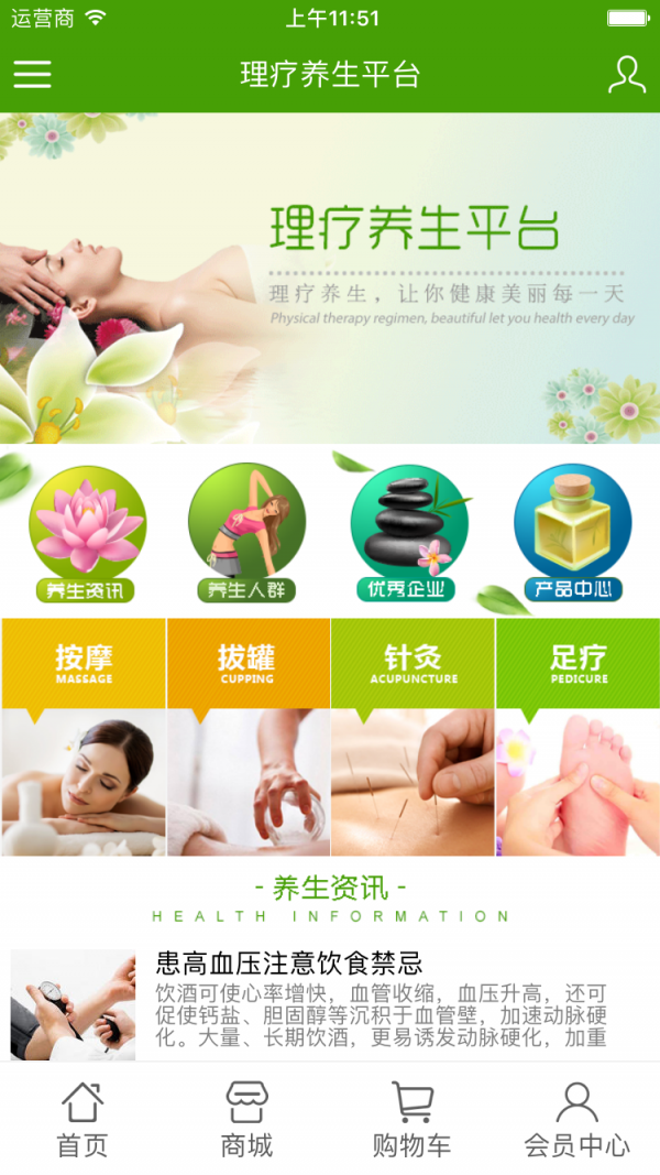 理疗养生平台是该行业最专业权威的移动APP服务平台,平台包含了养生资讯、养生人群、优秀企业、养生产品、理疗器材、保健产品、按摩、拔罐、针灸、足疗等栏目信息。