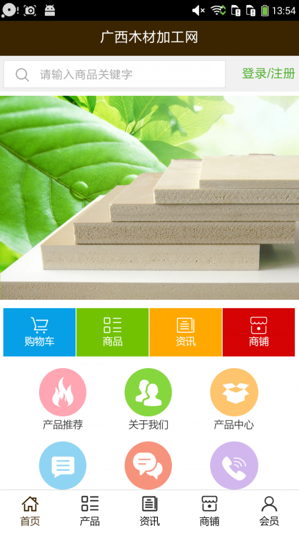 广西木材加工网APP不仅具备购物、查询订单、搜索商品、行业资讯和产品评价等常用功能,而且还实现了手机版特有的会员注册登录、广告位、招商开店等功能。目标是整合当地品牌商、生产商、经销商,为商家和消费者之间提供一站式解决案。