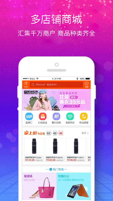 腾云多店铺app是一款网络购物应用,是个腾云移动商城系统。腾云多店铺app是徐州亿网为适应互联网+时代,而研发的具有自主知识产权的移动商城解决方案。腾云多店铺app旨在让你无论是生鲜、特产、母婴、医药、汽车、还是综合百货、跨境电商,都能轻松应对瞬息万变的新时代。