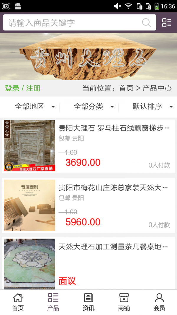 贵州大理石app不仅具备购物、查询订单、搜索商品、行业资讯和产品评价等常用功能,而且还实现了手机版特有的会员注册登录、广告位、招商开店等功能。目标是整合当地品牌商、生产商、经销商,为商家和消费者之间提供一站式解决案。欢迎下载使用!