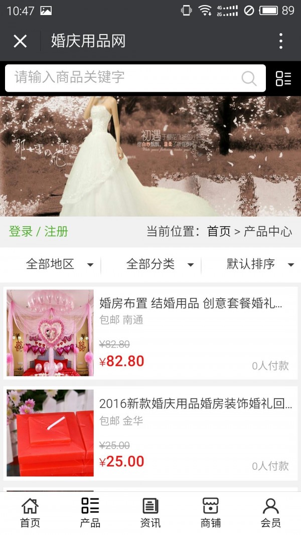 婚庆用品网APP不仅具备购物、查询订单、搜索商品、行业资讯和产品评价等常用功能,而且还实现了手机版特有的会员注册登陆、广告位、招商开 店等功能。目标是整合当地品牌商、生产商、经销商,为商家和消费者之间提供一站式解决方案。
