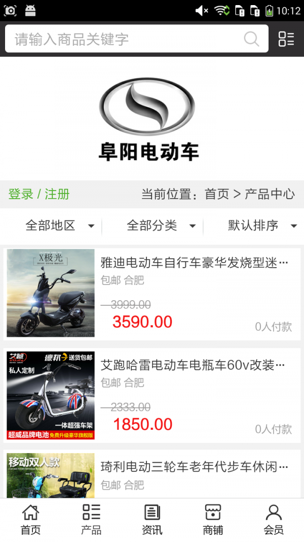 阜阳电动车客户端不仅具备购物、查询订单、搜索商品、行业资讯和产品评价等常用功能,而且还实现了手机版特有的会员注册登录、广告位、招商开店等功能。