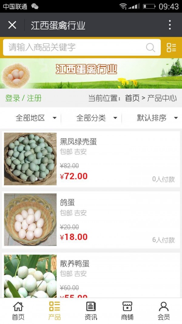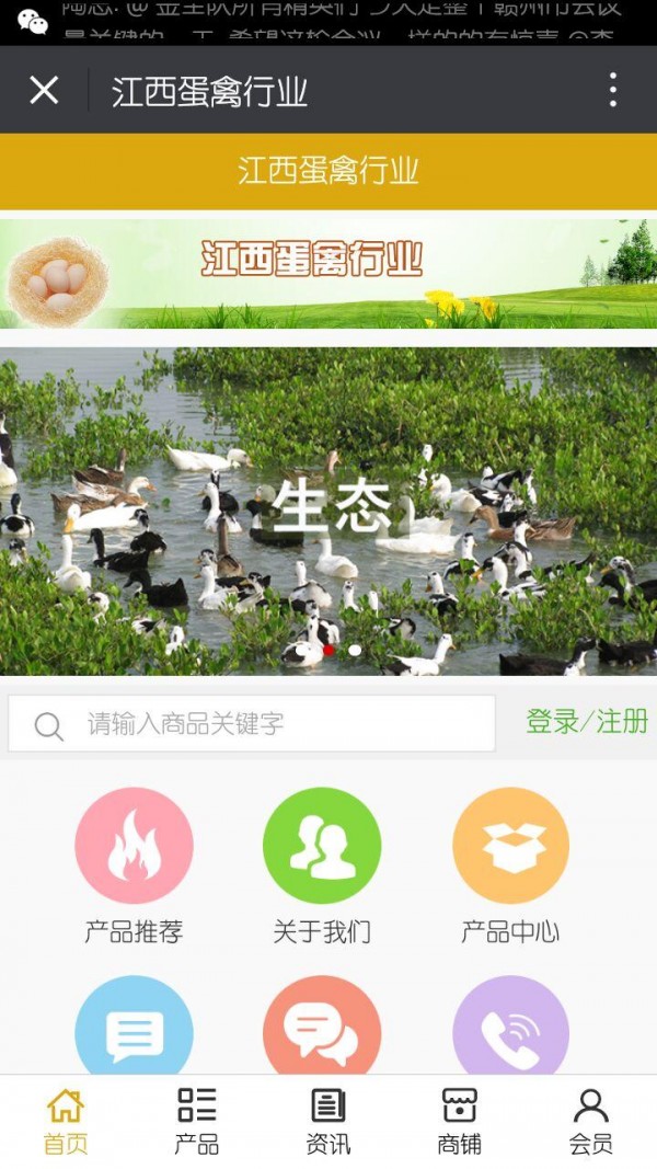 江西蛋禽行业APP不仅具备购物、查询订单、搜索商品、行业资讯和产品评价等常用功能,而且还实现了手机版特有的会员注册登录、广告位、招商开店等功能。目标是整合当地品牌商、生产商、经销商,为商家和消费者之间提供一站式解决案。