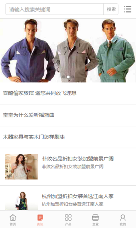 中国工装行业门户app帮助企业公司和商业人士了解行情,促销产品,把握商机,开拓市场,从而为生产厂家、商家与市场流通之间建立经济、快捷、准确、丰富的专业信息服务及电子商务服务,是中国工装行业门户行业相关人士上网找生意的好帮手!