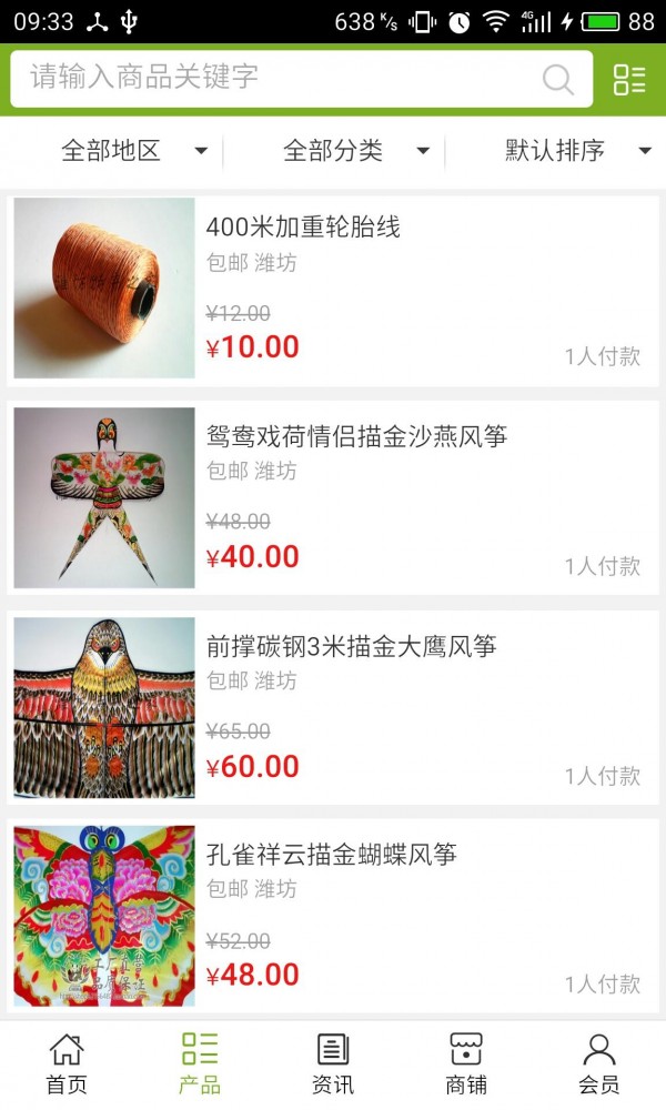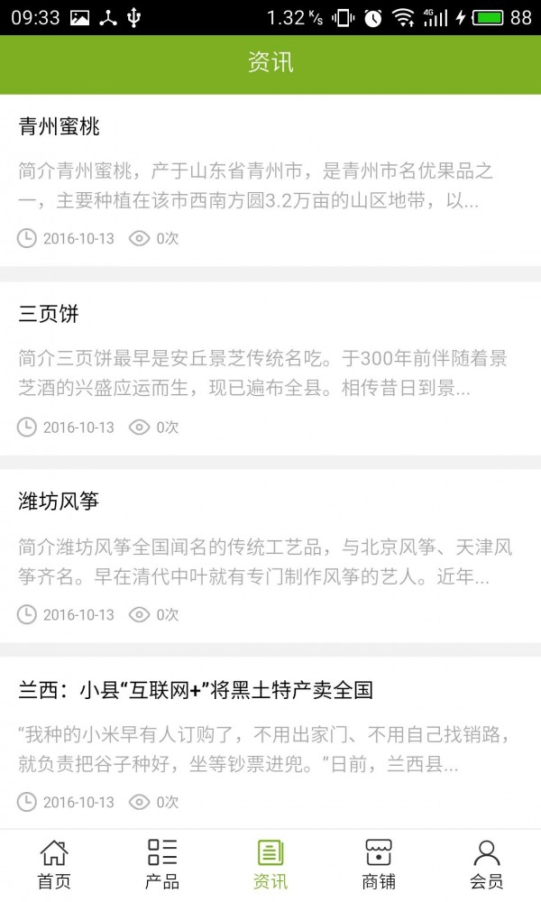 潍坊特产网app不仅具备购物、查询订单、搜索商品、行业资讯和产品评价等常用功能,而且还实现了手机版特有的会员注册登陆、广告位、招商开店等功能。