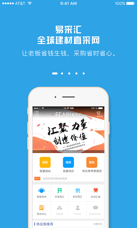 易采汇,全球建材直采网。以 TOP10 房企采购标准,联合数百家开发商,打造最具规模效应的采购平台,创新采购模式,开辟一条延续供需双方生存的通道。
