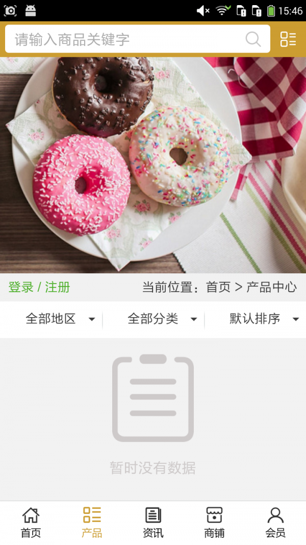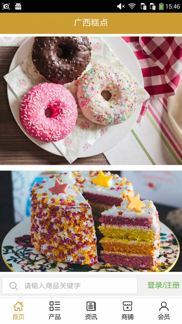 广西糕点app不仅具备购物、查询订单、搜索商品、行业资讯和产品评价等常用功能,而且还实现了手机版特有的会员注册登录、广告位、招商开店等功能。