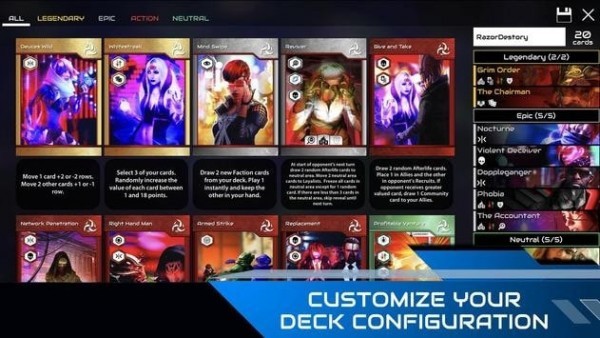 1.游戏采用赛博朋克风格。玩家可以体验不同风格的派系游戏,形成自己独特的卡片。