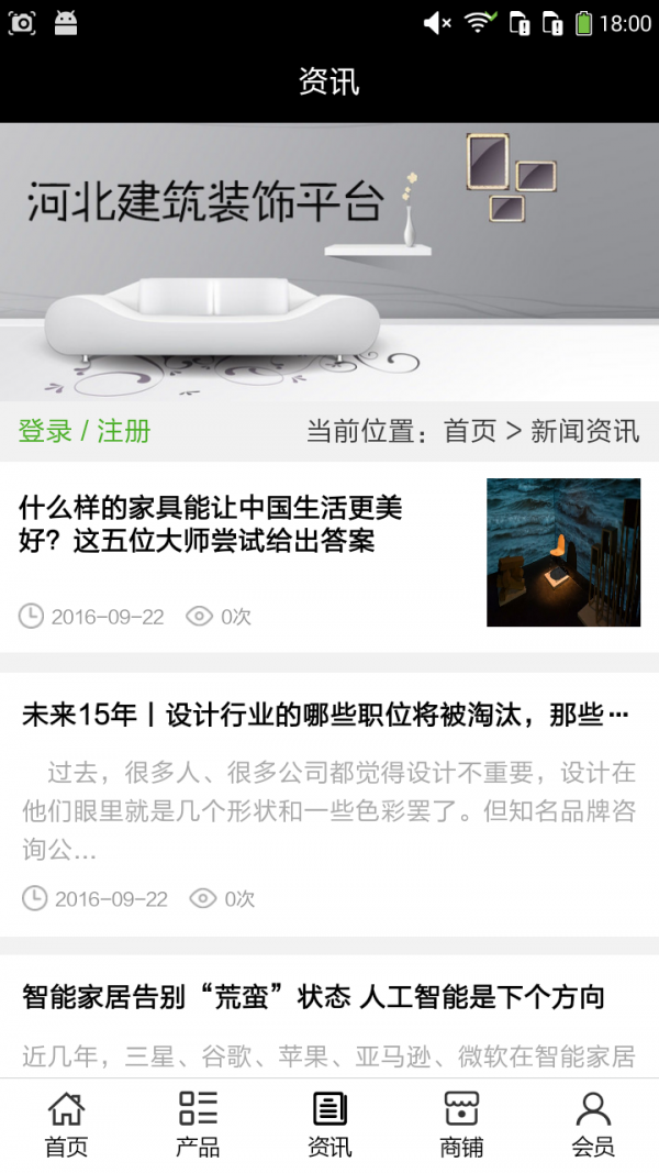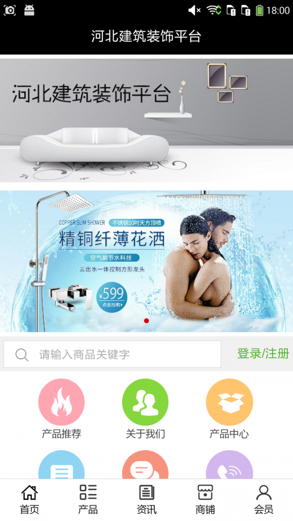 河北建筑装饰平台app不仅具备购物、查询订单、搜索商品、行业资讯和产品评价等常用功能,而且还实现了手机版特有的会员注册登录、广告位、招商开店等功能。