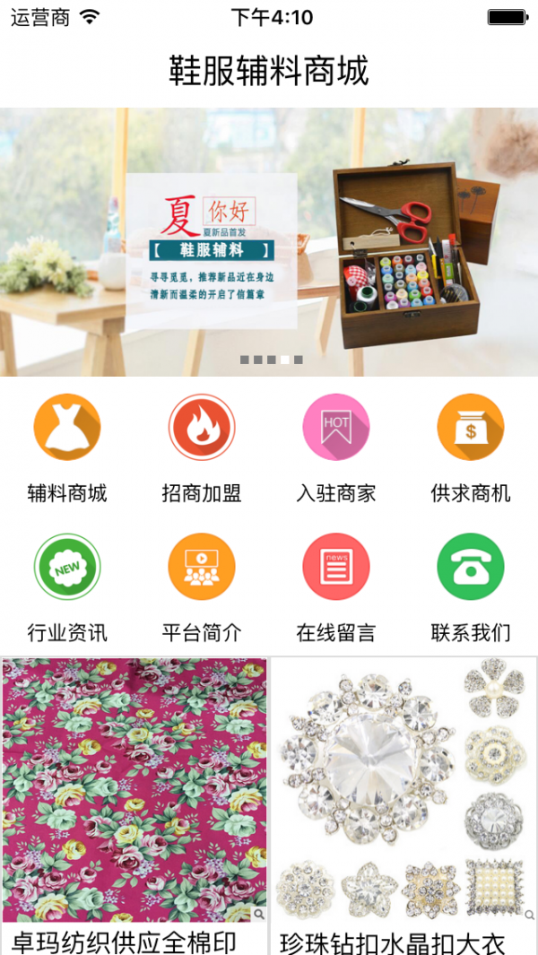 鞋服辅料商城app是一家鞋服辅料为主门户平台,汇集了面料、拉链、纽扣、纺织、辅料等各种鞋服辅料的产品,提供丰富鞋服辅料资源,整合鞋服辅料的资源,提供一站式服务。欢迎关注鞋服辅料商城!