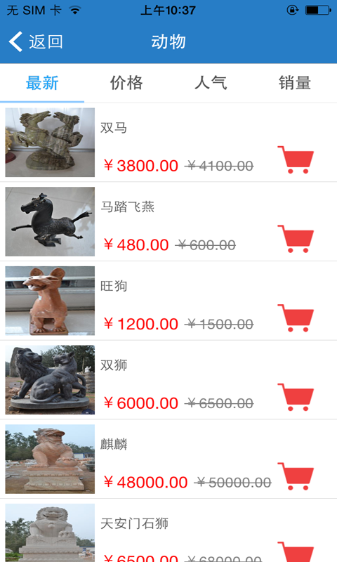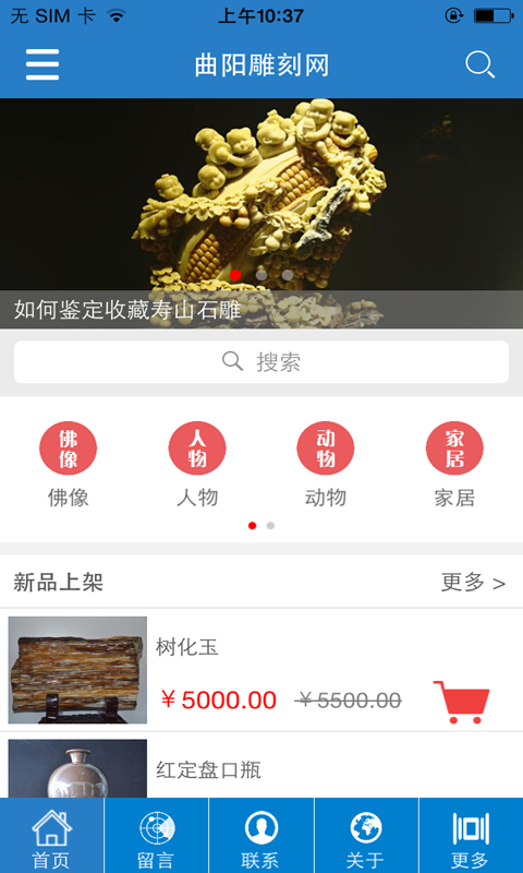 曲阳雕刻网app是一款网络购物类应用,提供各种雕刻产品,涵盖佛像、人物、动物、家居等,方便用户随时在线选购,还可以了解更多雕刻知识。