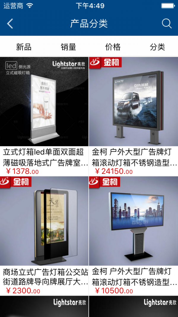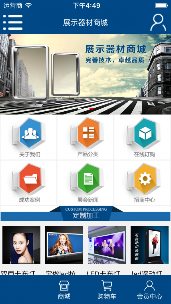 展示器材商城app作为一款专门针对广告宣传灯箱的商城选购平台。该平台提供各种广告设备的最新国内国外展会新闻、招商信息、品牌企业、成功案例等。总有一款适合您,欢迎下载使用!