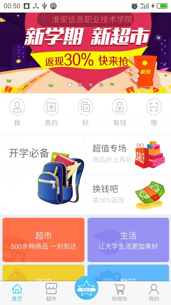 星帮生活app是一款为高校在校学生提供的移动购物软件,足不出户就可以购买各种生活用品、零食、饮料等,打造便捷校园生活。