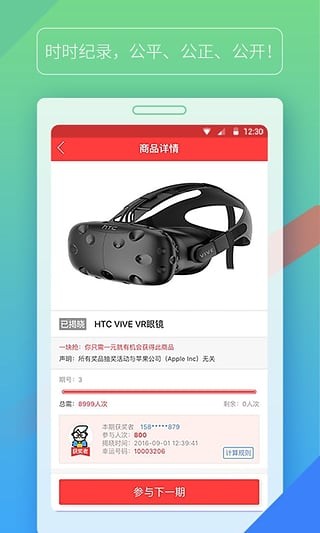 4、公平公正公开:以“商品定值+时时参与时间”,并完全公开定值和用户时时参与的时间,保证公平、公正、公开。