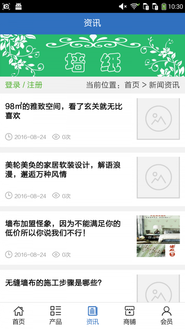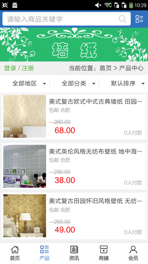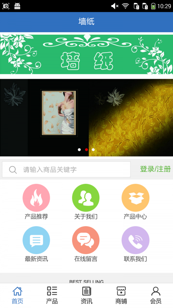 墙纸商城APP不仅具备购物、查询订单、搜索商品、行业资讯和产品评价等常用功能,而且还实现了手机版特有的会员注册登录、广告位、招商开店等功能。目标是整合当地品牌商、生产商、经销商,为商家和消费者之间提供一站式解决案。