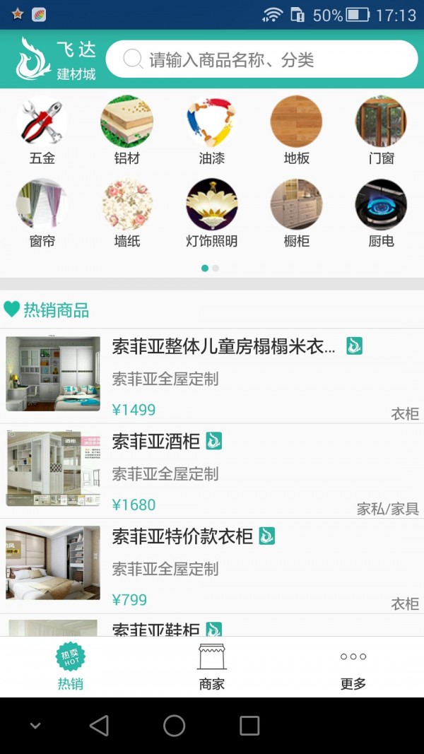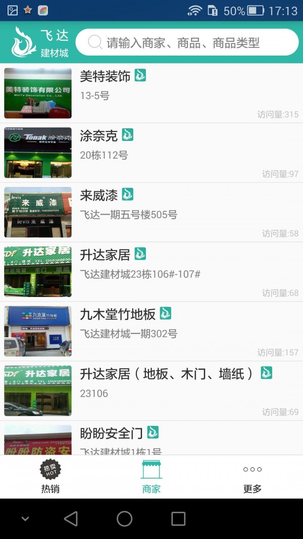 飞达建材城app是一款网络购物应用,是在这里你可实时查看飞达现代物流建材城商品信息、价格信息、热销商品和商品种类等信息。同时飞达建材城app用户也可以根据自己的需求,及时联系卖家,更好的购买自己需要的商品。
