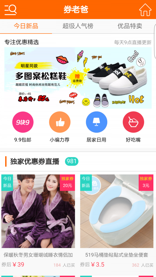 券老爸app是一款网络购物应用,是券大叔在在开发运营的移动销售平台。在券老爸app中伙伴们可查看产品信息,了解最新产品详情和真实的评论,以及在线选购商品等。