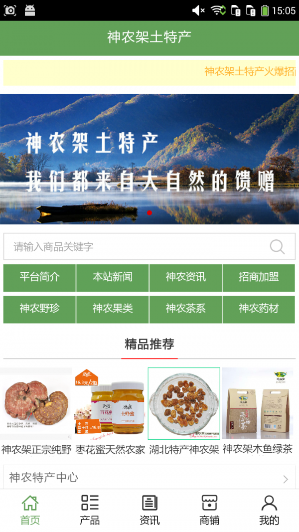 神农架土特产app是一款电商购物应用,神农架土特产app为用户提供一个土特产购物商城,方便用户轻松选购来自神农架的特色商品。
