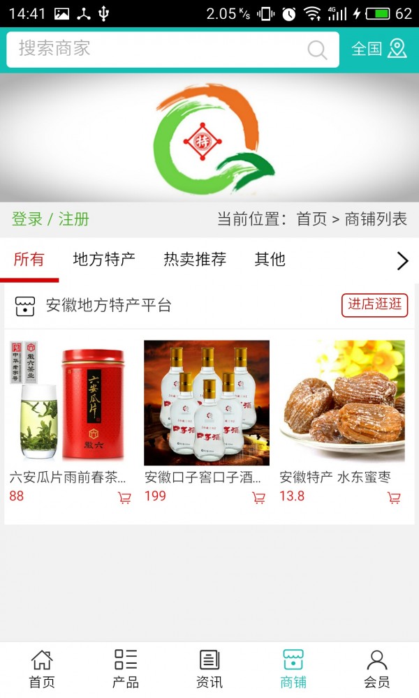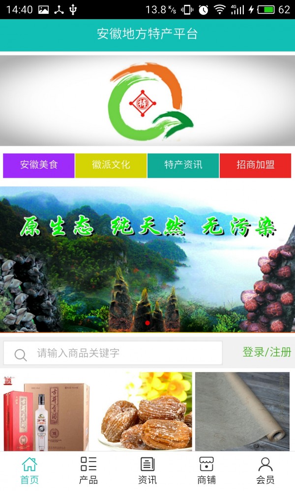 安徽地方特产平台app不仅具备购物、查询订单、搜索商品、行业资讯和产品评价等常用功能,而且还实现了手机版特有的会员注册登录、广告位、招商开店等功能。目标是整合当地品牌商、生产商、经销商,为商家和消费者之间提供一站式解决案。