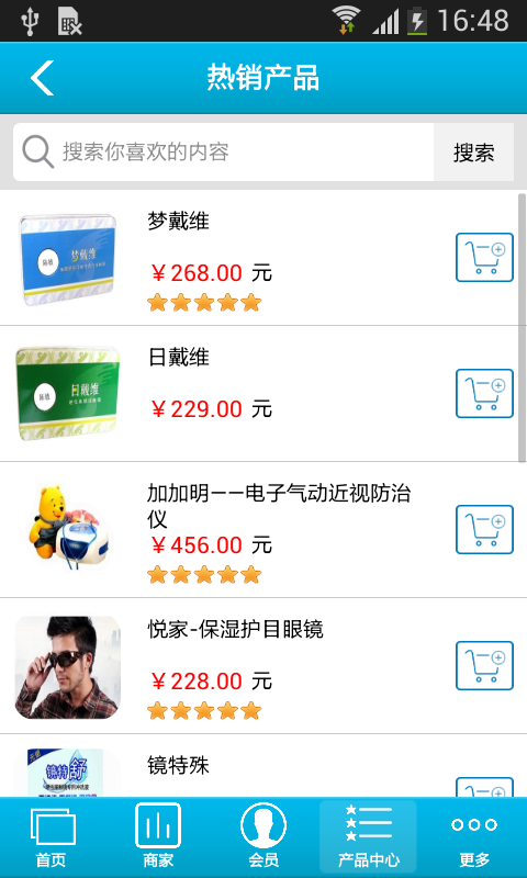 【产品中心】:本应用提供相关各种产品分类,方便客户查询购买。