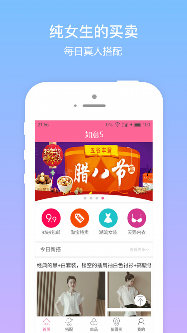 如意5app是一款专注女性消费的手机购物软件,香水、服装、家电、鞋在这里都能买到,每天10点准时上新,还有真人穿衣搭配供用户参考。