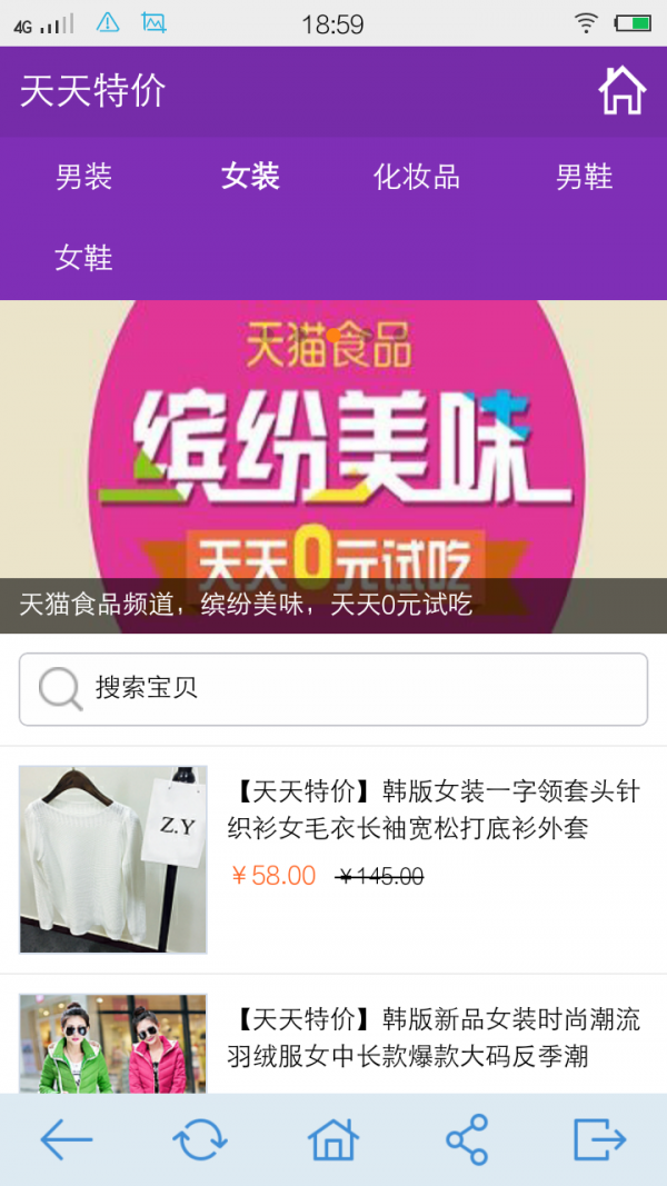 591优惠app使用h5制作,其特点是占用手机容量小、安全快速,为新一代手机APP软件;里面汇聚了天猫0元试吃、9.9块包邮,以及男女服饰、鞋子等优惠特价。