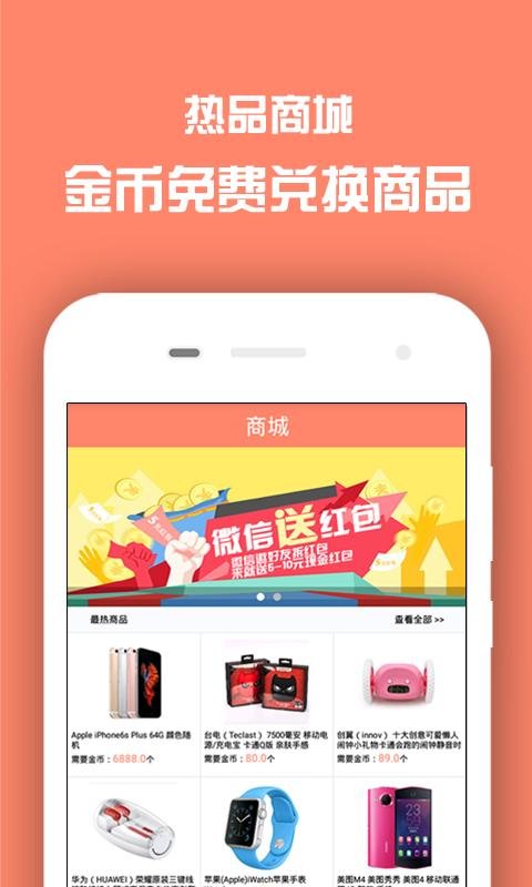 偷一手模式,每天偷取金币和红包,金币直接在商城兑换实物商品。