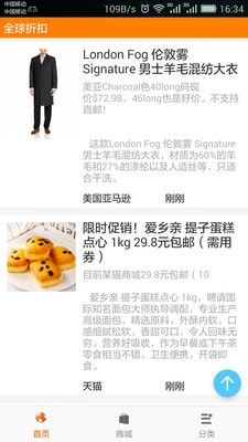 搜索京东、天猫、淘宝、当当网、易迅网、优购、顺丰优选、亚马逊、ebay、Woot 6pm等电商的优惠信息,聚合展示给用户。