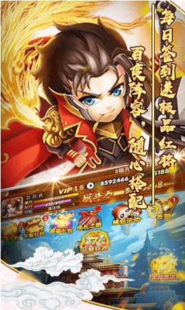 3、开服送豪礼,登入送赵云,签到送红将自选包,打造只属于你的专属阵容!